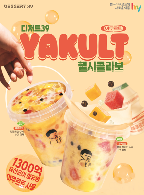 지난달 20일에는 hy(前 한국야쿠르트)와의 헬시콜라보로 화채와 스무디 등 신메뉴 7종을 출시했다. 해당 메뉴는 hy의 1971 야쿠르트를 활용해 만든 것으로, 제로 칼로리와 제로 슈가 제품을 꾸준히 선보이는 디저트39의 헬시콜라보의 일환이다. 대표 메뉴로는 ‘홍콩 망고 수박 화채’, ‘홍콩 청사과 수박 버켓 화채’, 다양한 과일 스무디, ‘야쿠르트 딸기 요거트 라떼’ 등이 있다.