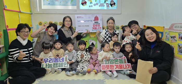 임서연 원장은 "가정어린이집이라 원아가 많지 않다. 그럼에도 많은 분들이 참여해 성금을 마련하게 돼 뿌듯하다”며 “작은 정성이지만, 도움이 필요한 이웃들에게 조금이나마 힘이 되기를 바란다”고 말했다.