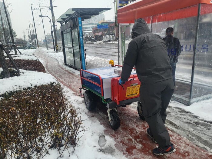 또한 살포기를 확충한 제설차량 2대를 추가 운영하고, 보도와 이면도로에 보도전용 제설장비와 이면도로 제설용역차량을 투입해 작업시간을 단축했다.