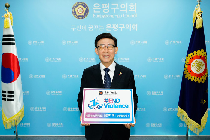 [시민일보 = 이대우 기자] 기노만 서울 은평구의회 의장이 은평구의회 의장실에서 아동 폭력 근절을 위한 캠페인 행렬에 잇대어 동참하였다.