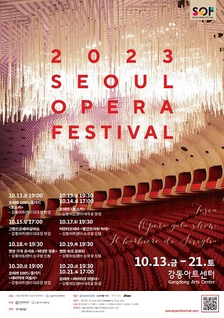 [시민일보 = 이대우 기자] 서울 강동문화재단(이사장 이수희)이 오는 10월13~21일 강동아트센터에서 2023년 제8회 서울오페라페스티벌을 열고 노블아트오페라단과 함께 오페라 ‘토스카’, ‘세비야의 이발사’ 등 오페라 입문자부터 애호가까지 사로잡는, 다채로운 공연을 선보인다.