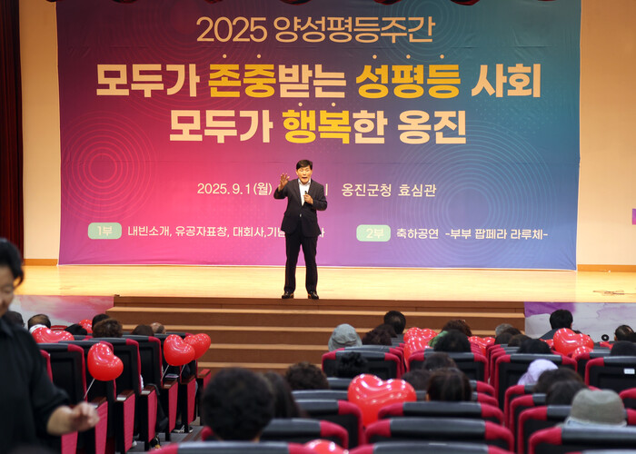 [인천=문찬식 기자] 인천 옹진군(군수 문경복)은 지난 1일, 옹진군청 효심관에서 2025년 양성평등주간(9월1일~7일)을 맞아 양성평등주간 기념행사를 열고, 성평등 사회 구현을 위한 실천의지를 다졌다고 밝혔다.