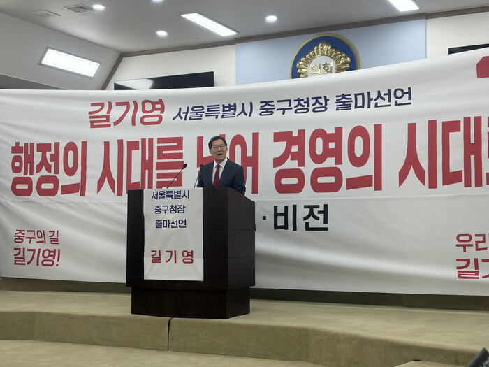[시민일보 = 여영준 기자] 국민의힘 소속 길기영 서울 중구의회 의원이 6.3 지방선거 서울 중구청장 출마를 공식 선언했다.