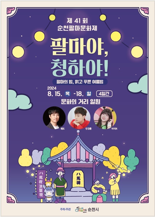 12일 시에 따르면 올해로 41회째를 맞이하는 팔마문화제는 ‘애민과 청렴’의 팔마 정신과 정원문화에 색을 입혀 문화콘텐츠로 새롭게 도약하는 문화도시 순천의 미래를 알리기 위한 문화축제로 기획했다.