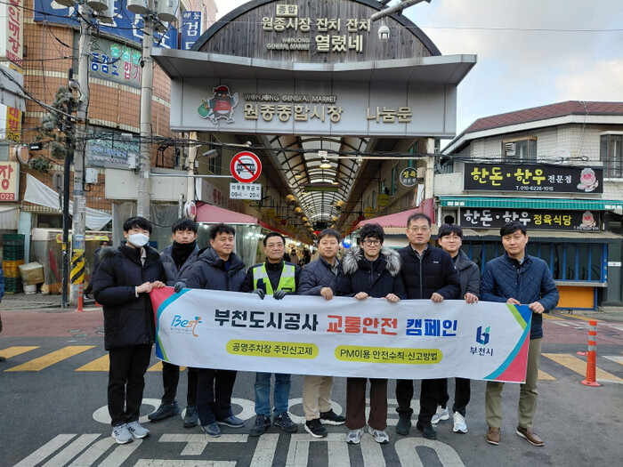 | 안전 문화 정착 캠페인 참가자들이 포즈를 취하고 있다. [사진=부천도시공사] |