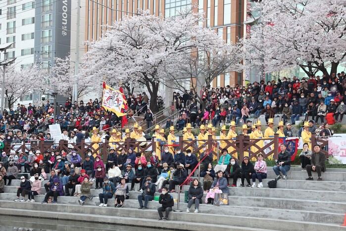 [시민일보 = 이대우 기자]최근 불광천에서 활짝 핀 벚꽃과 함께 ‘은평의 봄’ 벚꽃축제가 열렸다. 오후 6시 30분부터 처용무, 천고무 미디어아트, 국악인 남상일 공연 등 전통문화예술 공연이 펼쳐졌다.