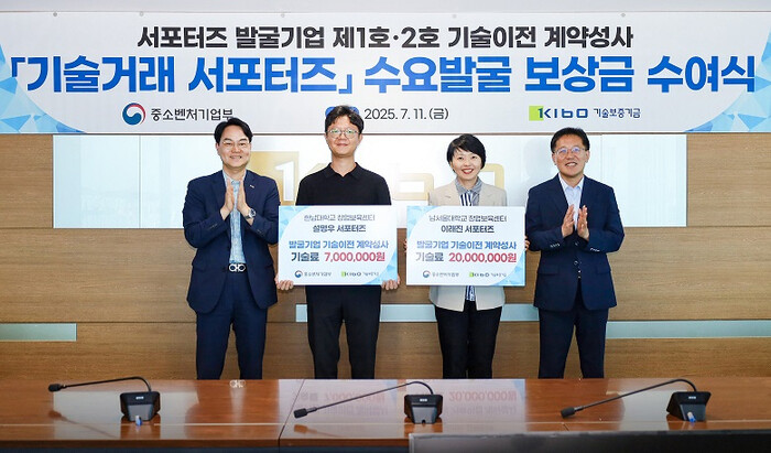 이날 보상금이 수여된 제1호 사례는 한남대학교 창업보육센터 소속 설명우 서포터즈가, 제2호 사례는 남서울대학교 창업보육센터 소속 이래진 서포터즈가 발굴한 기업이 체결한 기술이전 계약으로, 각각 700만원과 2000만원 규모의 계약이 성사됐다.