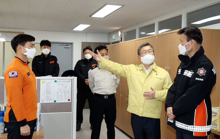 박일호 밀양시장이 화재가 잇따르는 겨울철을 맞아 8일 밀양소방서를 방문해 소방공무원을 격려했다.