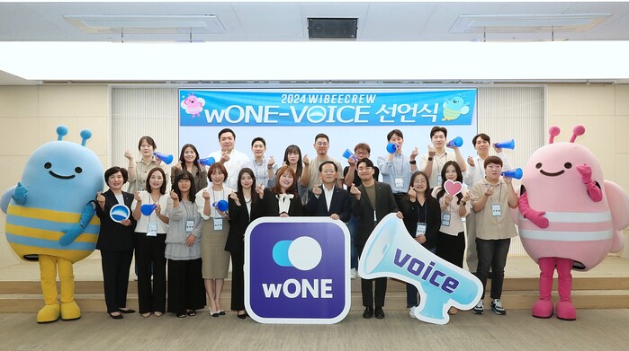 우리은행은 24일 본점에서 고객이 원(WON)하는 바를 말하면 은행은 이에 귀 기울여 빠짐없이 제도를 개선하겠다는 ‘wONE-Voice (원보이스) 선언식’을 개최하고 새로운 온라인 고객패널 조직 ‘위비크루’ 1000명을 위촉했다.