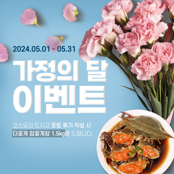 더꽃게 관계자는 "5월 가정의 달을 맞아 모든 가정이 행복한 시간을 보내길 바라며, 이를 응원하기 위해 특별한 선물을 준비했다"고 말하며, 좋은 음식과 함께 소중한 추억을 만들어가길 바란다고 전했다.