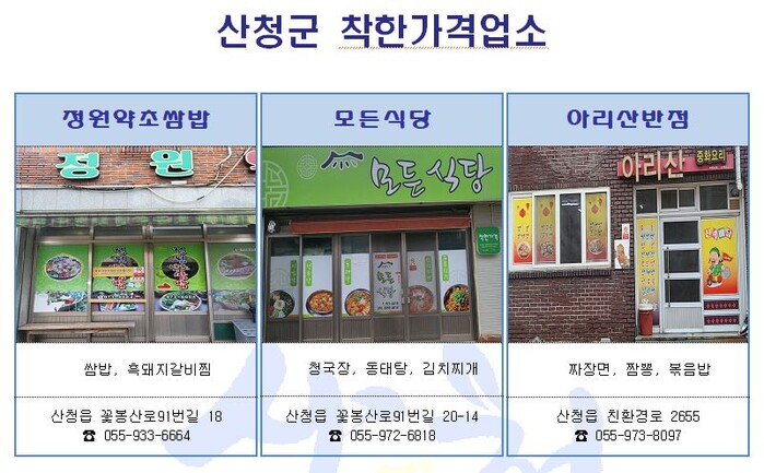 현재 산청군에는 착한가격업소 3곳이 지정돼 운영 중이다.