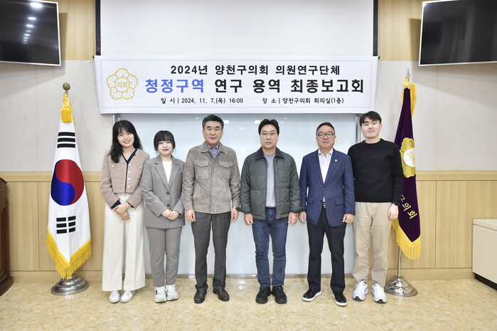 [시민일보 = 박소진 기자] 양천구의회 의원연구단체인 ‘청정구역(청년정책을 연구하는 구의원들의 역동적인 모임)’이 최근 의회 1층 회의실에서 연구용역 최종보고회를 개최했다고 12일 밝혔다.