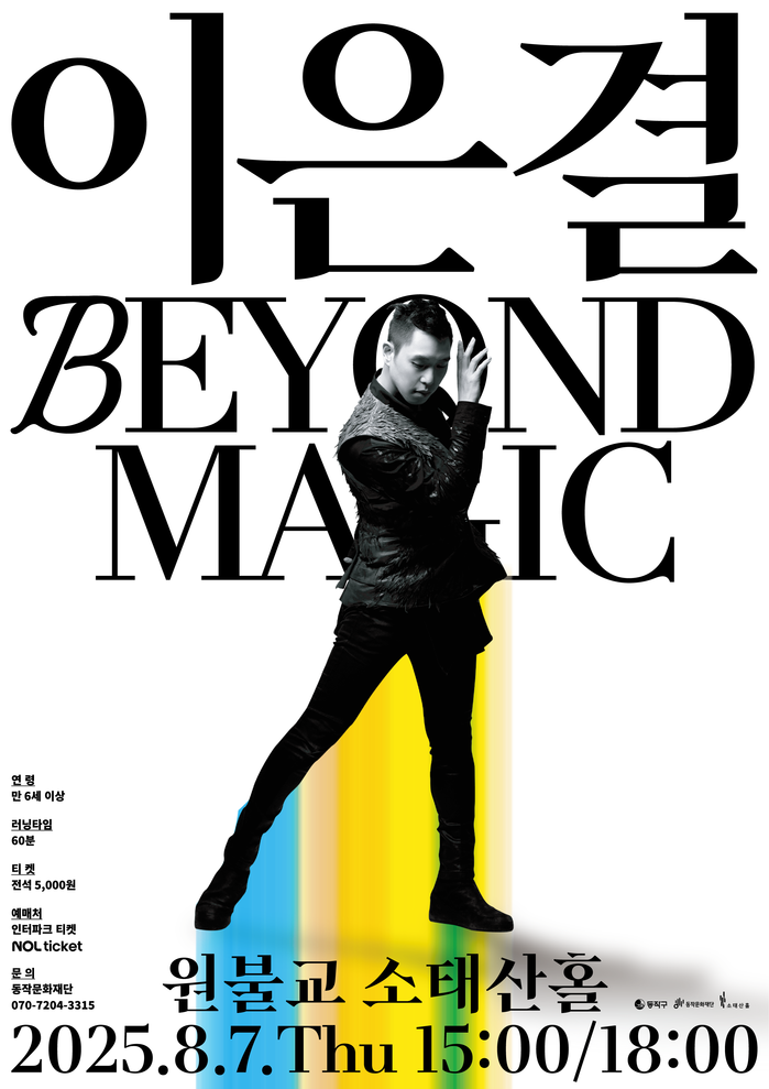 [시민일보 = 여영준 기자] 서울 동작구(구청장 박일하)는 오는 8월7일 오후 3시와 6시, 원불교 소태산홀(현충로 75)에서 세계적인 일루셔니스트 이은결이 선보이는 ‘비욘드 매직(BEYOND MAGIC)’ 공연을 개최한다고 밝혔다.