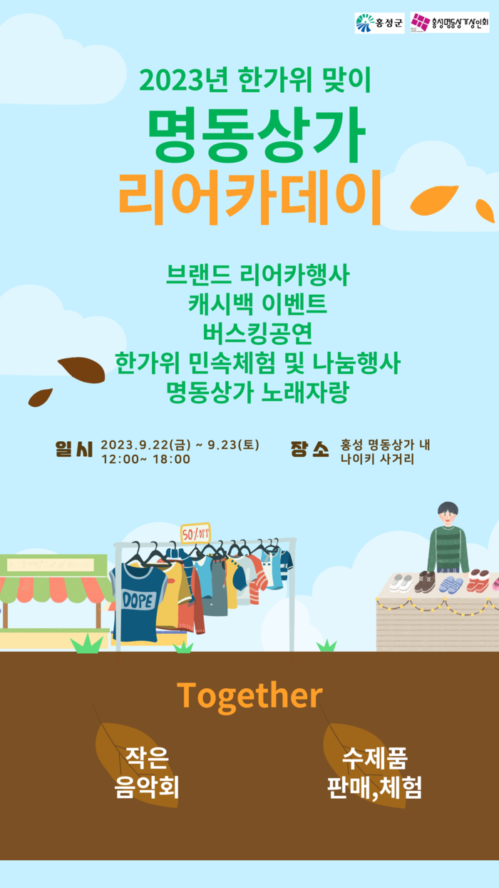 인절미 체험 및 나눔행사, 버스킹 공연, 명동상가 노래자랑 등 다양한 문화·체험 프로그램과 명동상가 상인회, 콩콩콩종합예술협동조합에서 다채로운 상품으로 구성된 리어카 매대를 운영할 예정이다.