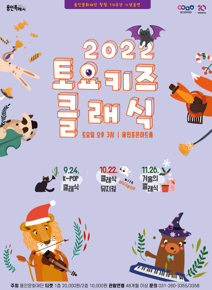 용인문화재단 관계자는 “어린이 클래식 상설공연 ‘토요키즈클래식’을 통해 ‘문화도시 용인’에 거주하는 어린이의 문화예술 향유 기회를 지속적으로 확대 하겠다”라고 밝혔다.