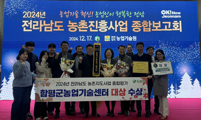 문정모 함평군 농업기술센터 소장은 “이번 수상은 직원들이 농업과 농촌의 발전을 위해 끊임없이 지역 현장을 누빈 결과”라며 “기후변화, 고령화 등 빠르게 변화하는 농촌 환경에 선제적으로 대응하며 지역 농업의 지속 가능한 성장을 도모하겠다”고 밝혔다.