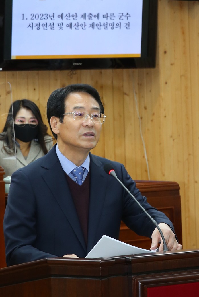 강진원 군수는 먼저“미래를 기반으로 현재를 설계하는 관점에서 책임감을 갖고 새해 살림살이를 준비했다”며 “예산은 단순한 숫자가 아니라, 군민의 생활을 책임지는 온기이며 미래에 대한 선제적 대처의 나침반”이라고 밝히며 군이 제출한 2023년도 예산 편성에 대해 강진군의회의 협조를 요청했다.