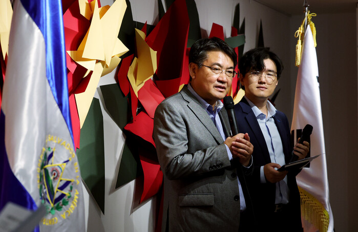 오승록 서울 노원구청장이 최근 경춘선숲길 갤러리에서 열린 한국·엘살바도르 수교 63주년 기념 ‘Flower’s Memory’ 전시 개막식에 참석했다. 사진은 오 구청장이 인사말을 하는 모습. (사진=노원구청 제공)