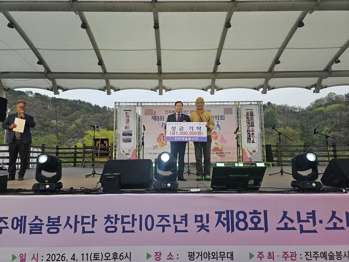 재단 관계자는 “음악을 통해 나눔의 행복을 실천해 주시는 진주예술봉사단에 감사드린다”며 “전달받은 성금은 기탁자의 뜻에 따라 관내 취약계층 학생에게 소중히 전달하겠다”고 말했다.