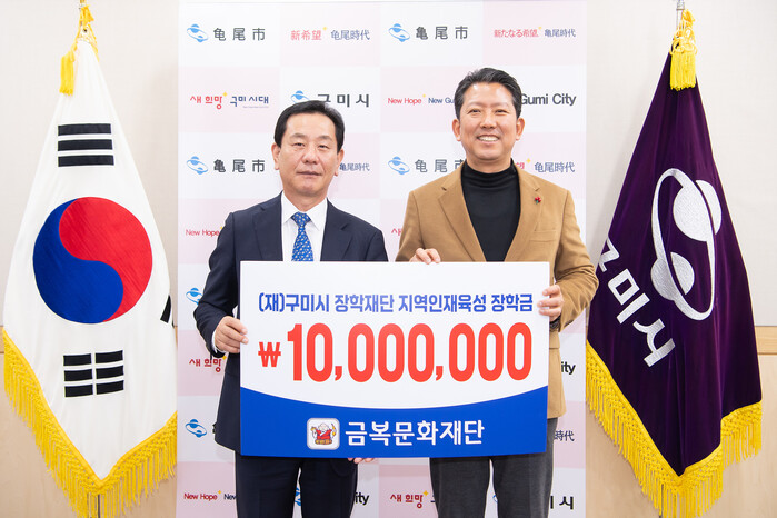 [구미=박병상 기자] 경북 구미시가 11일 (재)금복문화재단에서 1000만원의 장학기금을 전달했다고 밝혔다.