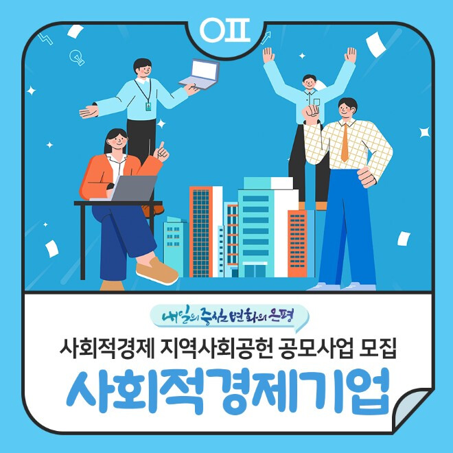 [시민일보 = 이대우 기자] 은평구(구청장 김미경)가 ‘사회적경제 지역사회공헌 공모사업’에 참여할 사회적경제기업을 오는 24일까지 모집한다고 밝혔다.