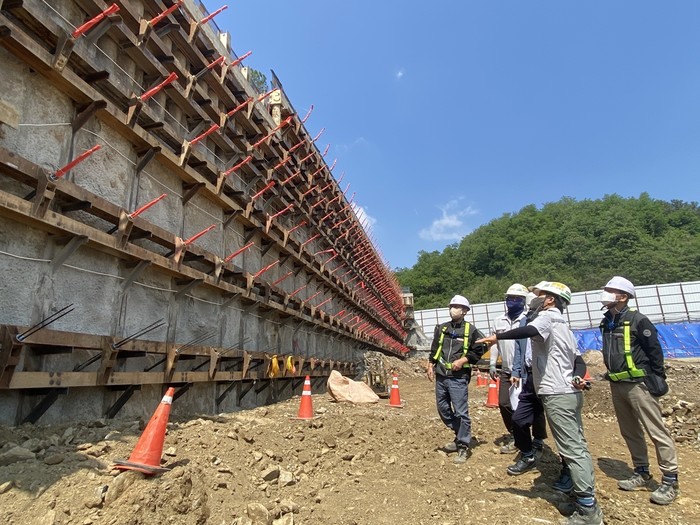 경기 광주시가 최근 지역내 착공 중인 공동주택 건설현장 14개 단지에 대해 ‘공동주택 건설 현장 품질 검수 점검’을 실시해 우기철 수해대비 사전점검 및 여름철 집중호우 등에 대비한 재난방지, 각종 시설물 안전관리 등도 함께 점검했다. 사진은 시 관계자들이 건설 현장에서 현장점검을 하고 있는 모습. (사진제공=광주시청)