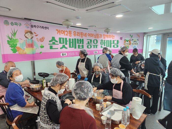 [시민일보 = 이대우 기자] 최근 송파구(구청장 서강석)가 거여2동에서 젊은 세대와 1인 가구를 대상으로 어머니 손맛을 배우는 요리교실 ‘손맛 비법 공유 한마당’을 개최하였다.