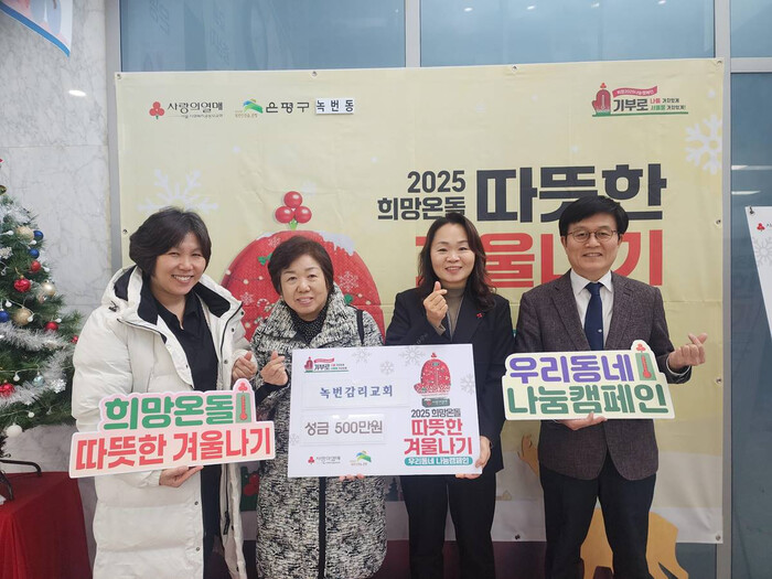 성계수 녹번동장은 “해마다 귀한 성금으로 지역사회에 온기를 불어넣어 주신 목사님과 교회 관계자에게 감사하다”며 “꼭 필요한 분들을 지원하는 데 사용될 수 있도록 최선을 다하겠다”고 밝혔다.