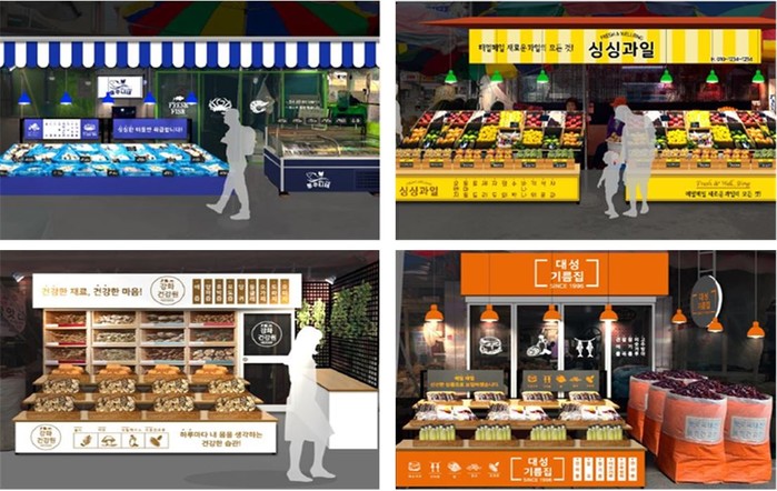 상품 판매대는 물품원산지·가격, 제로페이 가맹점 표시 등 정보제공과 함께 위생관리가 용이한 재질 사용 등 이용고객의 편의를 돕는 디자인이 적용된다.