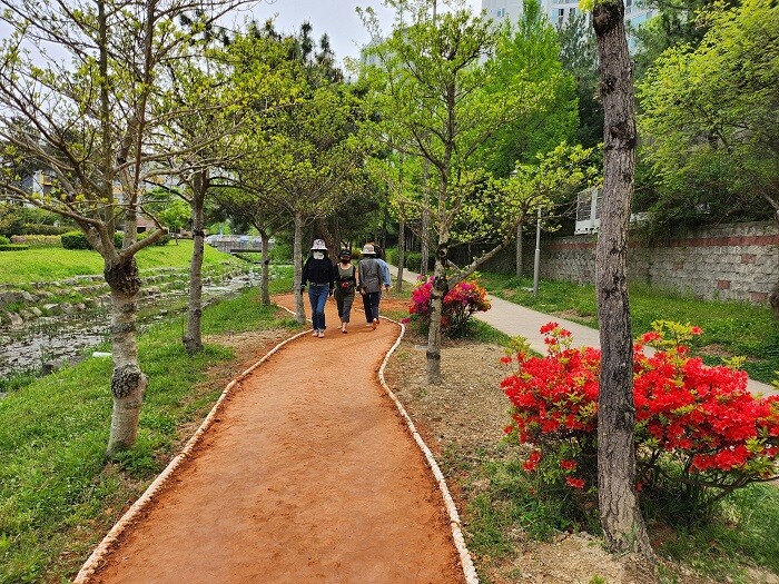 시는 맨발걷기 길 조성에 앞서 지난 5개월간 4개 바닥 소재(황토, 황토+마사, 마사, 모래)를 각각 10m 길이로 시범 설치해 선호도를 조사한 결과 55%로 가장 선호도가 높은 황토를 이용해 전체 구간을 시공했다.