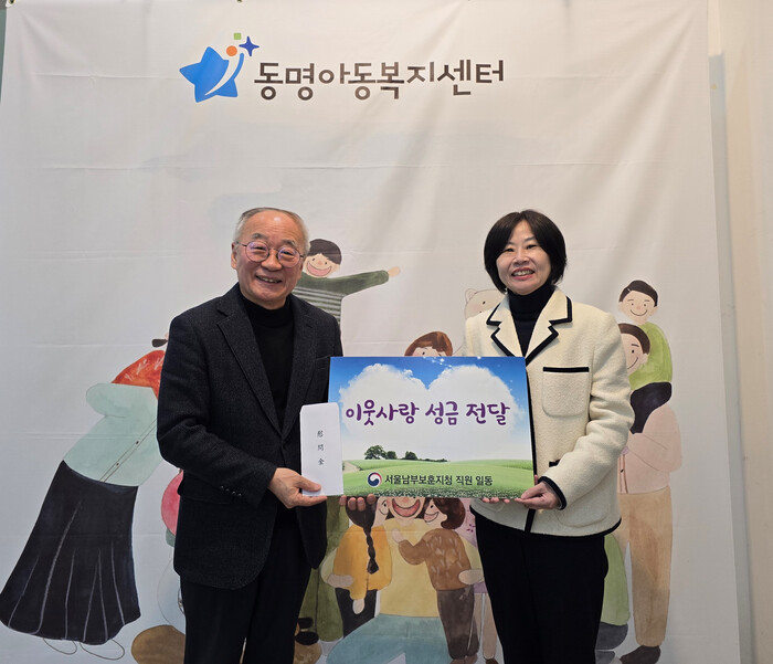 [시민일보 = 이대우 기자] 서울남부보훈지청(지청장 염정림)은 설 명절을 맞아 최근 지역내 사회복지시설인 동명아동복지센터를 방문하여 직원들의 ‘모두의 보훈 드림’ 이웃사랑 성금 위문금을 기부했다.