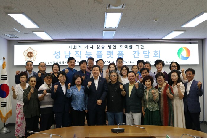 [성남=오왕석 기자] ‘성남시의회 더불어민주당의원협의회’는 27일, 성남시의회 5층 회의실에서 성남 최대 직능조직인 ‘성남직능플랫폼’ 임원진 및 회원과 함께 사회적 가치 창출 방안 모색을 위한 간담회를 개최하였다.