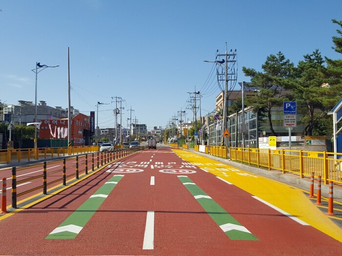 이에 시는 학생들의 등하교 교통안전을 확보하고 교통흐름에 방해가 되지 않도록 도로선형을 조정하고 중앙 안전지대를 줄여 도로를 확장해 학생들이 안전하게 승하차할 수 있는 ‘안심 승하차존’을 조성했다.