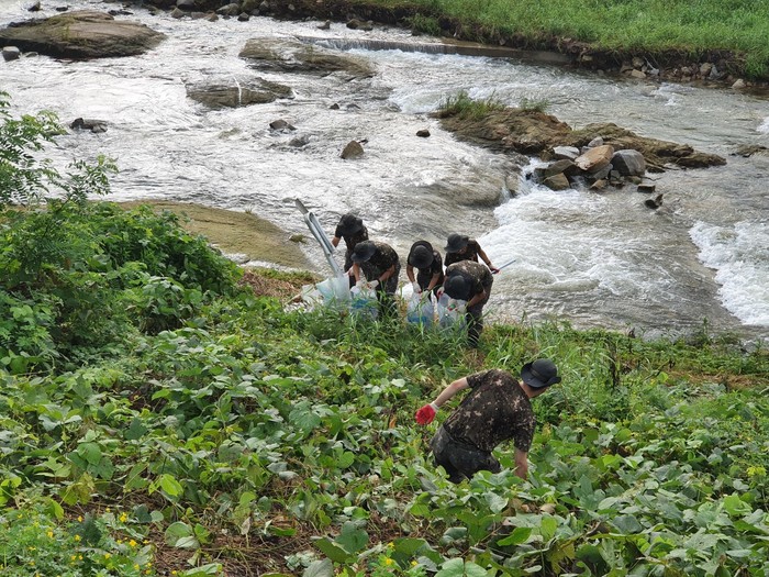 경기 양주시 남면 행정복지센터는 최근 하천에 유입된 쓰레기를 제거하기 위해 민·관·군 합동으로 환경정화 활동을 펼쳐 남면 신산리 신산체육공원에서 상수리 발운리교까지 이르는 입암천 5.1km에서 쓰레기 총 2톤을 수거했다. 사진은 28사단 공병대대 장병들이 하천 쓰레기를 치우고 있는 모습.(사진제공=양주시청)