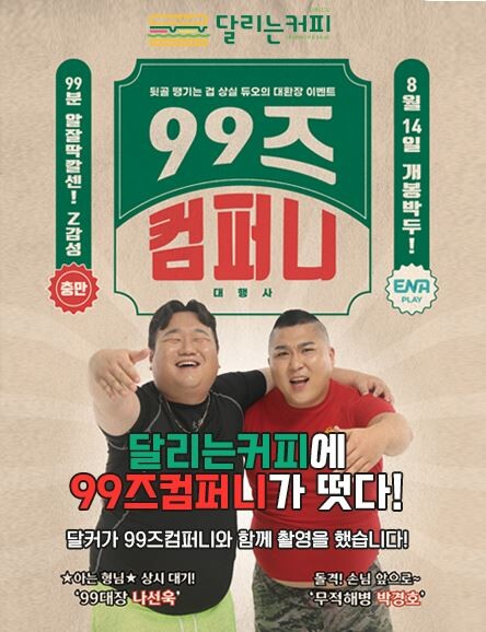 지난 8월 14일 ENA PLAY(이엔에이플레이)에서 첫 방송된 ‘99즈 컴퍼니’에는 99대장으로 유명한 나선욱과 무적해병 박경호가 출연했으며, 둘만의 환상의 콤비가 많은 웃음을 이끌어냈다.