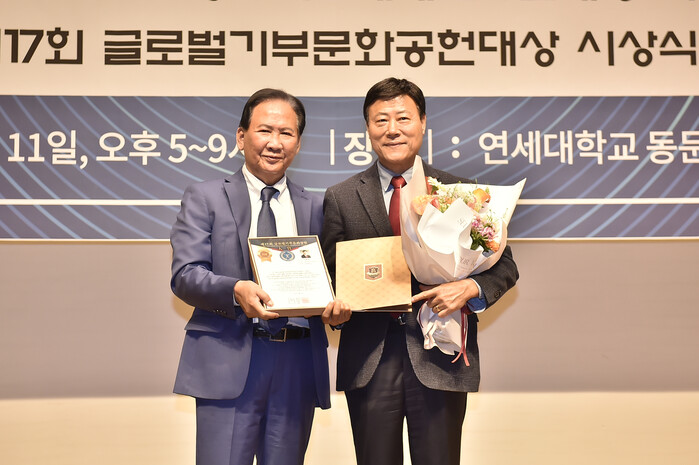 글로벌기부문화공헌대상은 (재)국제언론인클럽과 (재)기부천사클럽이 주관해 글로벌기부문화 확산을 위해 국제ㆍ정치ㆍ사회ㆍ문화ㆍ교육ㆍ예술ㆍ체육 등 각 분야에서 기부문화에 공헌한 개인이나 단체 등을 매년 선정해 시상하는 권위 있는 상이다.