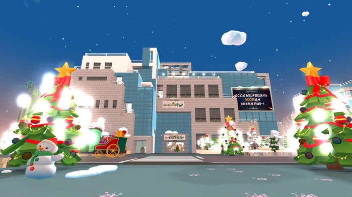 | ▲ 크리스마스 분위기의 메타버스 서초구립 느티나무쉼터(제페토) (사진제공=서초구청) |