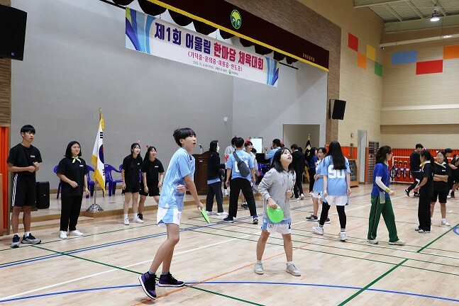 [청주=최성일 기자] 청주 동남부 소재 소규모 4개 중학교(가덕중, 문의중, 미원중, 현도중)의 학생 120여명과 교직원 40여명이 참여한 가운데 ‘제1회 어울림 체육한마당’이 가덕초.중학교(교장 이범모)에서 성황리에 개최됐다.