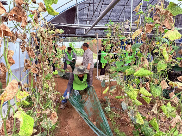 [시민일보 = 문민호 기자] NH농협은행(은행장 강태영) IT부문은 지난 20일 강원도 춘천시 소재 오이재배 농가를 찾아 일손돕기를 실시했다고 21일 밝혔다.