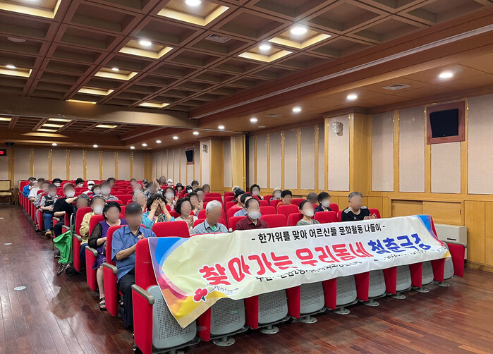 어르신들이 안전하게 영화를 관람할 수 있도록 동보장협의체 위원을 비롯해 우리동네돌봄단, 명예사회복지공무원들도 이날 자원봉사로 참석했다. 주민들은 오랜만에 외출한 어르신들에게 정답게 인사하고 안내하면서 이웃 사랑을 실천했다.