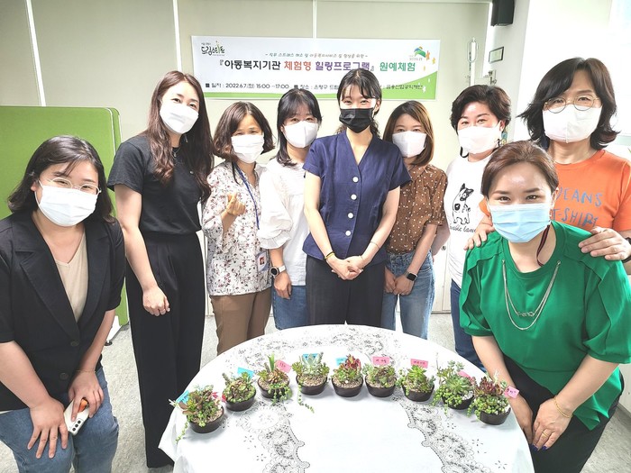 구 드림스타트 아동복지종사자들은 ‘긍정의 힘, 다육아트 만들기’ 원예체험 참여를 통해 긍정의 말이 주는 힘에 대해 배우고, 직원들과 소통의 시간, 스트레스 해소 및 회복 탄력성을 강화할 수 있는 시간을 가졌다.