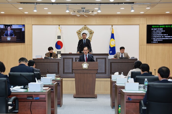 [진도=황승순 기자] 김희수 전남 진도군수가 1일 진도군의회 본회의장에서 열린 제292회 정례회 제2차 본회의 시정연설에서 2024년도 군정 운영방향을 제시했다.