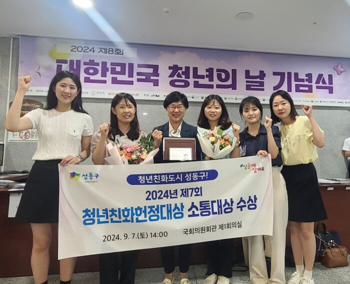 [시민일보 = 박소진 기자] 서울 성동구(구청장 정원오)가 최근 열렸던 2024년 '제7회 청년친화헌정대상'에서 우수 자치단체로 선정됐다고 19일 밝혔다.