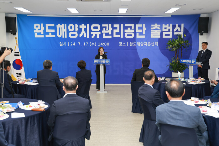 출범식은 해양치유 시설의 전문적인 운영과 해양치유산업 경쟁력을 강화하기 위해 설립된 완도해양치유관리공단의 정식 출범을 기념하기 위해 마련됐다.