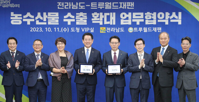 협약에 따라 트루월드재팬은 일본내 식품 유통 채널을 활용해 전남산 농수산식품의 현지 주류마켓 입점과 연간 2000만달러의 농수산물 수입을 한다.