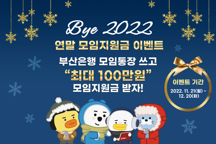 [시민일보 = 여영준 기자] BNK부산은행은 오는 12월20일까지 ‘Bye 2022 연말 모임지원금 이벤트’를 실시한다고 22일 밝혔다.
