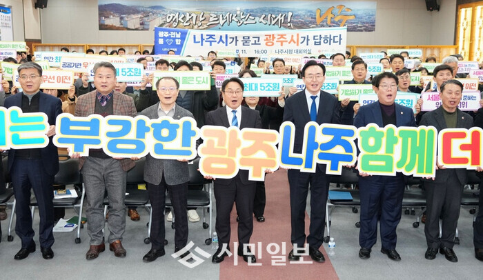 강기정 광주시장은 “통합은 우리 모두에게 반드시 이익이라는 점을 자신 있게 말씀드린다”며 “나주는 혁신도시를 중심으로 에너지·교육·연구 기능이 집적된 강점을 가지고 있다. 통합은 나주의 위상을 강화하고, 국가균형발전과 삶의 질을 높이는 전환점이 돼야 한다”고 말했다.