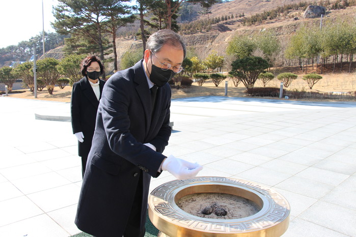 부산지방보훈청(청장 임성현)은 16일 국립 산청 호국 원 봉안 담에서 무연고 국가유공자의 안치 식을 열었다고 밝혔다.