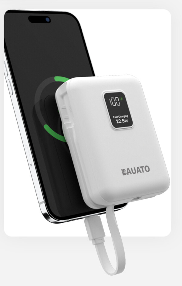 바우아토 맥세이프 보조배터리는 '일체형 케이블'로 무선 충전뿐만 아니라 유선 충전까지 가능한 올인원 보조배터리라는 것이 특징이다.