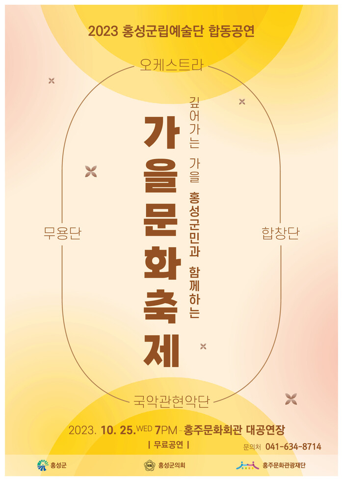 이번 공연은 홍성군립오케스트라, 홍성군립합창단, 홍성군립무용단, 홍성군립국악관현악단으로 구성된 홍성군의 4개 군립예술단이 함께 준비한 합동공연으로 홍성군민과 함께 하는 가을 문화 축제이다.